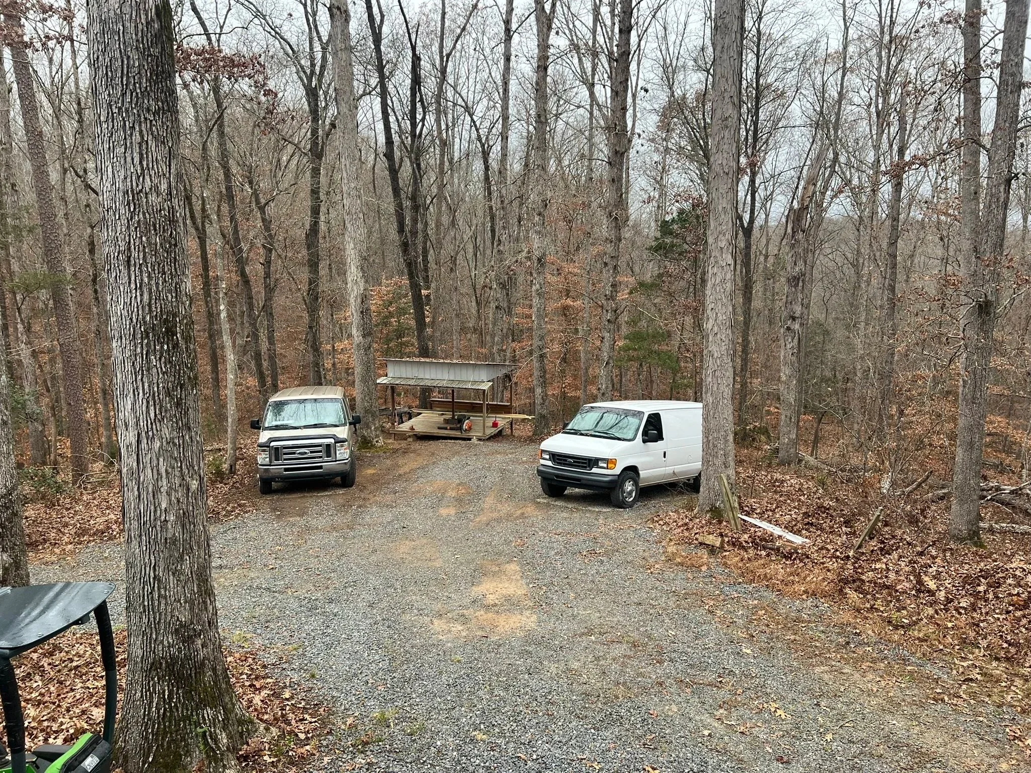 This was best idea. With the shack moved back now plenty of parking for three large trucks. The idea being you can pull up to cabin, off load, and then back into parking area. To exit - drive straight out !