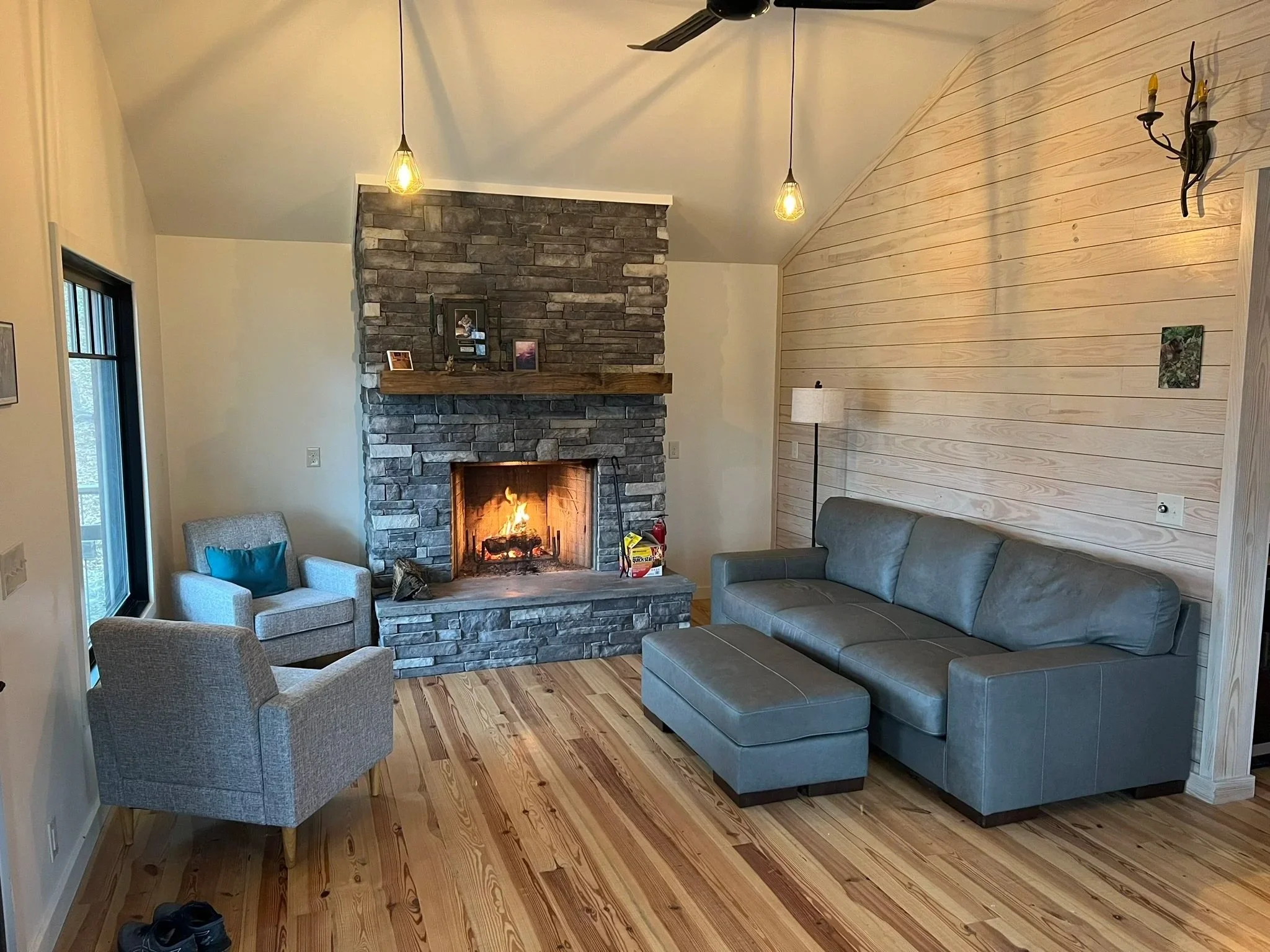 This was Dec 4 2022. The house was cleaned up. Fire was made. Flooring just transformed the house.